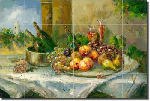 "Fruit and Wine" Ceramic Tile Mural 17" x 25.5" Kitchen Shower Backsplash Info