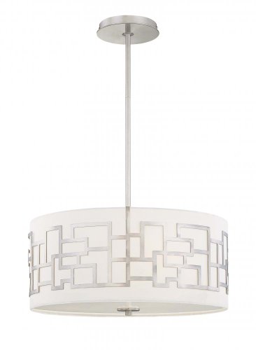 Accent your decor with a blend of contemporary and retro styles by adding the George Kovacs by Minka P194-084 3-Light Pendant - Brushed Nickel to your decor. This pendant features a frosted shade in creme with a brushed nickel decorative lattice accent. Its cool design shines bright via three 100-watt medium base bulbs (not included) and adds a finishing touch to your dining room or living space.About Minka AireFor form, function, and design, there is no better brand than Minka Aire. The Minka Group, from which this fine name in fans originates, is responsible for the very best in wall fixtures and decorative lighting. With national distribution centers in Corona, California and Concord, North Carolina, it's evident that Minka's reliability is renowned from coast to coast. Minka Aire produces some of the finest traditional, transitional, and contemporary ceiling fans on the market today. Each one is produced by expert craftsmen skilled with brass, wrought iron, cast aluminum, wood, and resin. And Minka Aire makes accessories as well. Everything from controls, fan blades, and downrods. This is the very best in interior and exterior decorating.