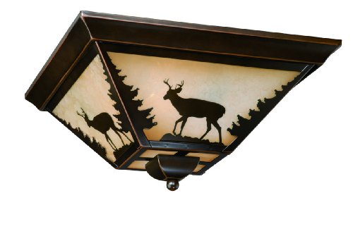 The damp rating of the Vaxcel Bryce Flush mount - 14W in. Burnished Bronze will let you install it almost anywhere, but you ll need to check your local building codes before you try to add this rustic fixture to your deer stand. The four-sided metal body is finished in the traditional style of rubbed bronze that is nicely offset by the amber flake glass shades. Add three 60-watt, medium-base bulbs and bring some natural light to your home, lodge, or office.About Vaxcel LightingFor over 20 years, Vaxcel International has been a premier supplier of residential lighting products. Based in Carol Steam, Ill., Vaxcel's product line is composed of more than 2,000 items, ranging from builder-ready fixtures and ceiling fans to designer chandeliers and lamps, in the latest styles and finishes. They're known in the industry for offering a full selection of products at competitive prices.