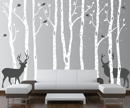^^^^ Get a Sale Price Birch Tree Wall Decal Forest with Snow Birds and Deer Vinyl Sticker Removable (9 Trees) 8 Feet Tall #1161