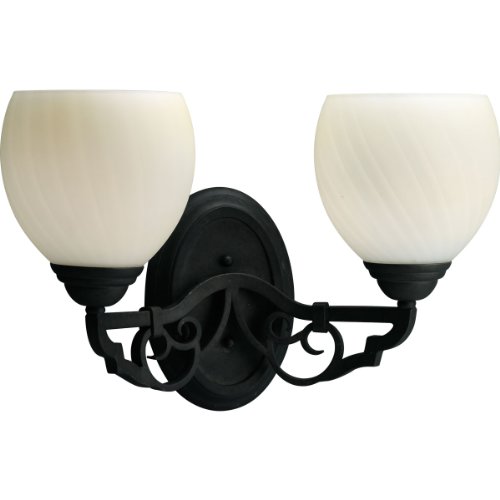 Progress Lighting P2747-80 2-Light Bath Bracket with Antique Swirl Art Glass, Forged Black Info