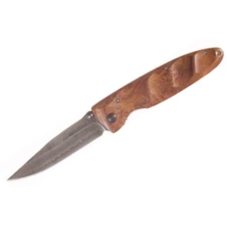 Features a 3.25 in Damascus w/VG10 core steel blade and a 4.25 in. Quincewood handle. Comes complete with a nylon sheath.ATTRIBUTES Blade Detail: Plain Blade Length (inches): 3.50 Blade Material: Damascus Carry System: Linen Pouch Handle Material: Quincewood Lock Style: Liner Lock Overall Length (inches): 7.75