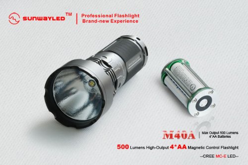 The New SUNWAYMAN M40A is a high-output, multi-function premium LED flashlight, specially designed for those who need an extremely high performance flashlight that runs on common AA batteries. Lightweight and optimized for single hand use, the M40A is ideal for use by law enforcement, search and rescue teams, hunters, and explorers. Utilizing SUNWAYMAN's Magnetic Control System (MCS) the M40A is a fantastic lighting tool offering four user selectable output modes including an attention grabbing tactical strobe. The M40A features a state of the art Cree XM-L T6 LED, which provides an impressive 600 Lumen beam with a 820 Foot Throw on High. The M40A is a carefully designed to minimize bulk and offers a fantastic balance of capability, power source and size. Powerful performance from an inexpensive, widely available power source the M40A offers peace of mind for the world traveler.